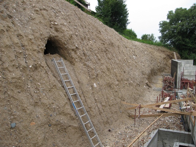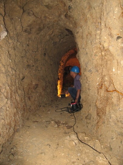 Indossata l’attrezzatura da speleologo ci siamo subito preoccupati di verificare la solidità delle pareti del cunicolo che corre all’interno del ceppo morenico della collina, un conglomerato argilloso che rimane molto compatto se protetto dagli sbalzi termici dell’esterno.