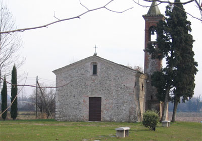 Va sottolineato inoltre che la canaletta terragna di irrigazione lambisce l’absideDa queste parti la coltura a granoturco è consolidata da anni e capita quasi sempre nei mesi estivi che la chiesetta sia circondata da questo tipo di coltivazione e scompaia così alla vista del viandante.