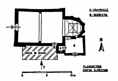 Lo scavo archeologico ha permesso infatti di rilevare che le fondazioni sono deboli e poco profonde; per questo la parete sud ha ceduto nel tempo verso l’esterno ed a più riprese sono stati aggiunte chiavi di volta o barbacani di rinforzo.